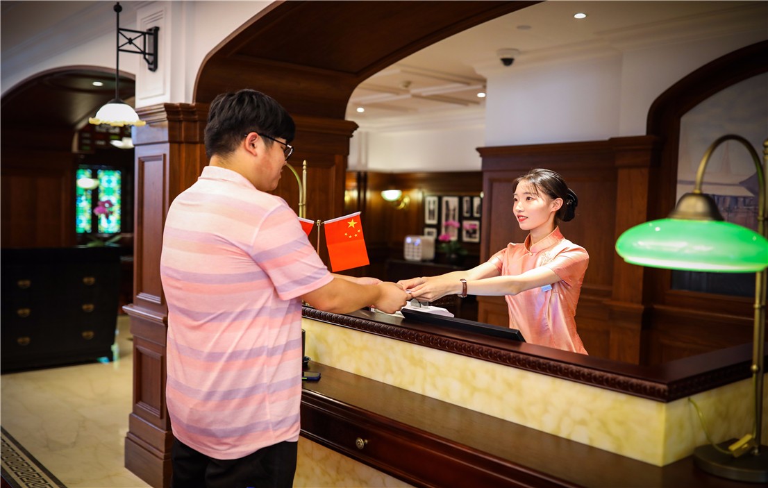 迎戰(zhàn)篇,10月1日,西柵服務(wù)中心的廣場(chǎng)上舉行了升國(guó)旗儀式,在冉冉升起的五星紅旗下,我們迎來了祖國(guó)母親華誕70周年,也迎來了烏鎮(zhèn)旅業(yè)巾幗文明崗建崗11周年,在成立巾幗文明崗的11周年來,崗員們始終堅(jiān)守,將最大的善意釋放給每一位游客的理念,在各自崗位上默默堅(jiān)守,面對(duì)黃金周到來,以整裝待發(fā),積極投入到一線崗位上。進(jìn)到游客服務(wù)中心里,從咨詢臺(tái)到售票處,再到大前臺(tái)及接待導(dǎo)游板塊,每個(gè)角落都井然有序回答客人的問題,解決客人的難題,做到見有問候,問有答聲,求有助解,崗員們的一言一行,組成了一道亮麗的風(fēng)景線,用優(yōu)美的姿態(tài)展現(xiàn)了巾幗獨(dú)特的魅力。隨著崗員們素質(zhì)不斷提高,服務(wù)意識(shí)不斷提升,傳承發(fā)揚(yáng)巾幗精神的步伐將鏗鏘向前,用勤勞和善意譜寫一份責(zé)任的不朽篇章,用行動(dòng)獻(xiàn)禮祖國(guó),高質(zhì)量的服務(wù)是對(duì)遠(yuǎn)道而來賓客最好的饋贈(zèng)。
