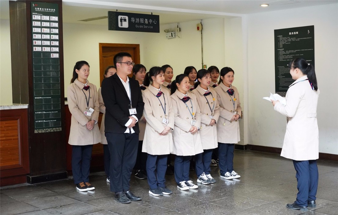 節(jié)前備戰(zhàn)篇,票務(wù)中心集體培訓(xùn)黃金周指導(dǎo)原則及注意事項(xiàng),做好突發(fā)狀況和應(yīng)急措施的落實(shí),以及安排各點(diǎn)位人員及主要負(fù)責(zé)人落實(shí)接待方案,總結(jié)歷年來的問題并提出解決方案 提高窗口輪換率,確保票款的安全;接待導(dǎo)游板塊進(jìn)行了黃金周節(jié)前動(dòng)員大會(huì),再次明確熟悉各種安全應(yīng)急通道及景區(qū)多條疏散路線,演習(xí)安全事故應(yīng)急處理情景,排練相應(yīng)民俗節(jié)慶文藝節(jié)目等,以確保游客安全舒適游玩;大前臺(tái)和預(yù)訂中心也開展了游客高峰期提高服務(wù)效率等一系列對(duì)應(yīng)的培訓(xùn)及演練,崗員們用實(shí)際行動(dòng)告訴八方來客,我們準(zhǔn)備好了!