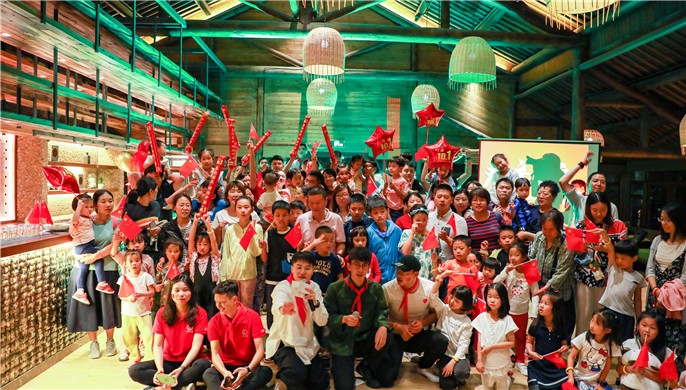 據(jù)了解,此次黃金周,烏村于國(guó)慶當(dāng)天在畫廊處展開(kāi)了“繪長(zhǎng)卷”的活動(dòng),CCO們帶領(lǐng)著小朋友作畫,大家信手涂鴉,描繪出自己心目中的祖國(guó)河山,用自己的畫筆為祖國(guó)慶生。此外,每天上午9點(diǎn)到11點(diǎn)半,烏村私塾還特別開(kāi)設(shè)了國(guó)慶專題折紙課——折五角星以及折紙飛機(jī)等特色課程,每天晚上,在村長(zhǎng)的帶領(lǐng)下,烏村還會(huì)上演精彩的國(guó)慶派對(duì),從搞笑劇表演,到樂(lè)隊(duì)SOLO和互動(dòng)游戲,更有村民大合唱《我和我的祖國(guó)》……精彩不斷。