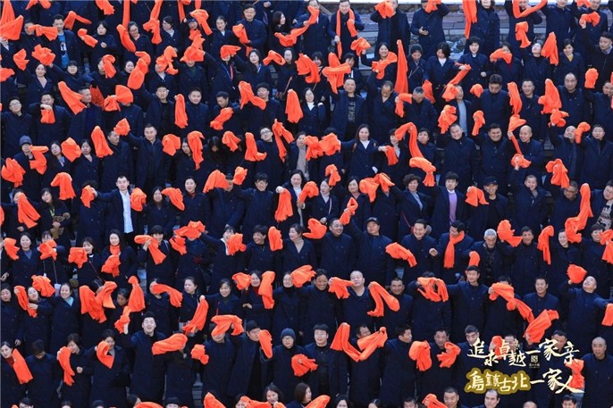 身著統(tǒng)一的服裝,帶著橙紅圍巾的1500名烏旅員工整齊劃一地排列在長城劇場上,此時此刻,每一位烏旅伙伴的心中都洋溢著愉悅的心情。