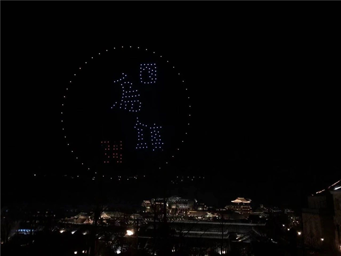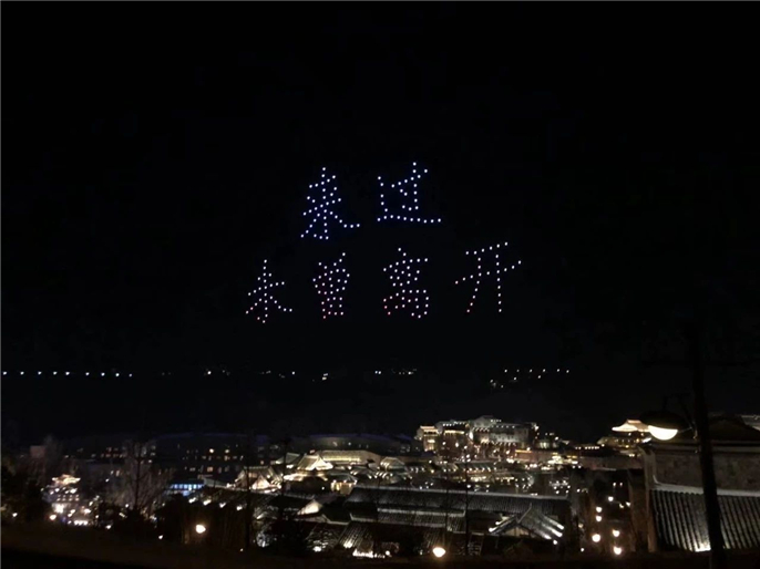 古北夜空中的無人機(jī)秀也在上演,數(shù)百架無人機(jī)懸空組成“烏鎮(zhèn)”、“來過 未曾離開”、“烏鎮(zhèn)古北一家親”等字樣,陣勢浩大,精彩紛呈。