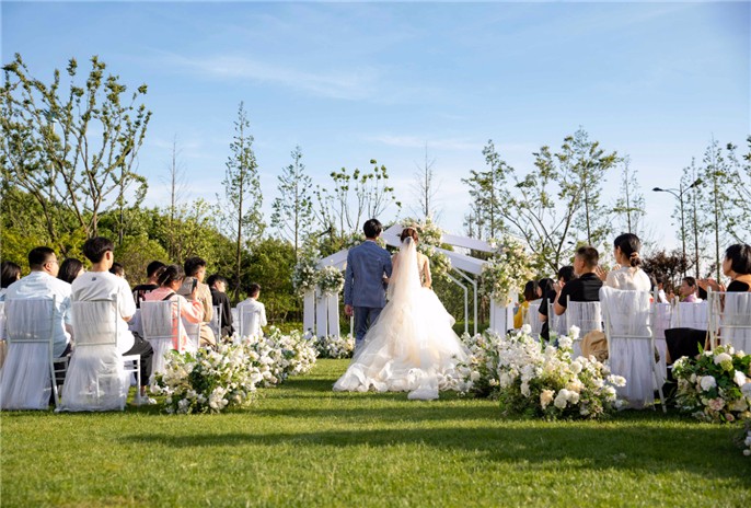 而喜歡陽光、唯美、小清新的婚禮,伊甸園鉑金酒店的綠地簡直太合適不過。純白玫瑰編織下的儀式感與藍天白云、輕風和煦撞個滿懷,甜意油然而生。