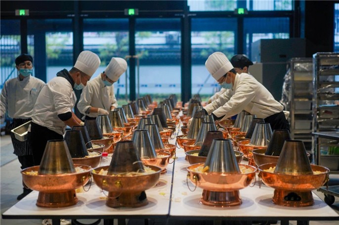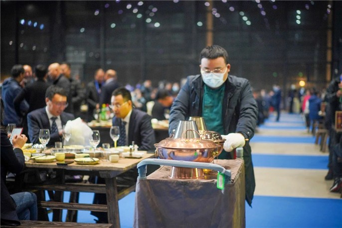 烏旅酒店團(tuán)隊(duì)在保障世界互聯(lián)網(wǎng)大會·互聯(lián)網(wǎng)發(fā)展論壇的同時,迅速集結(jié),保障大型商會活動,數(shù)百只烏鎮(zhèn)特色的銅暖鍋熱氣騰騰,以另一種形式展現(xiàn)出“烏鎮(zhèn)速度”。