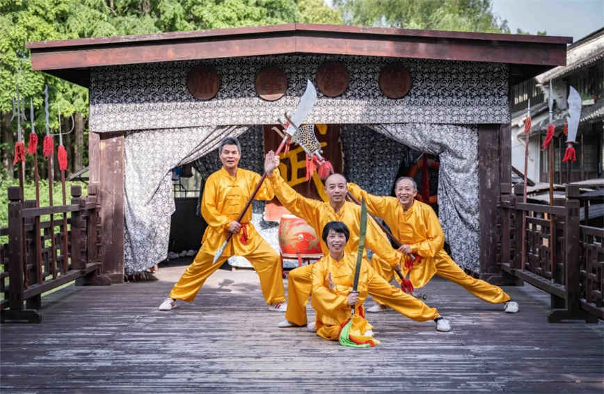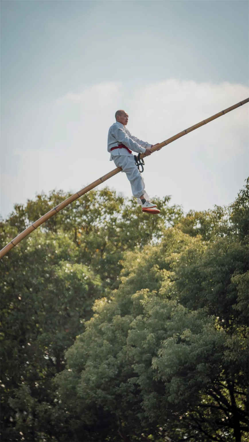 烏鎮(zhèn)東柵,非遺演繹活色生香:技藝人赤手攀竹竿至數(shù)十丈高空,以“金猴望月”“倒掛金鉤”等絕技帶來精彩刺激的高桿船表演;商鋪區(qū)水岸間,拳船武者踏浪對決,拳影激蕩引得岸上喝彩如潮;在皮影戲館,匠人雙手對舞千古事,哪吒鬧海神話再現(xiàn),將舊時光娓娓道來。一步一景,皆是江南風物志的生動寫照。