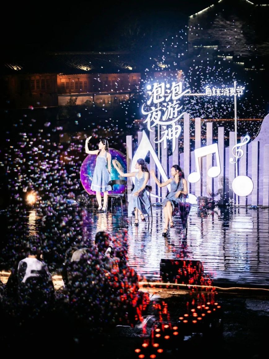 當(dāng)夏夜有了形狀—— 是泡泡的弧度 啤酒的泡沫 音樂的波長 烏鎮(zhèn)水劇場煥新登場 舉起酒杯跟著樂隊(duì)一起搖擺 伸手觸碰漫天的彩虹泡泡 這一次一起成為夏夜的參與者