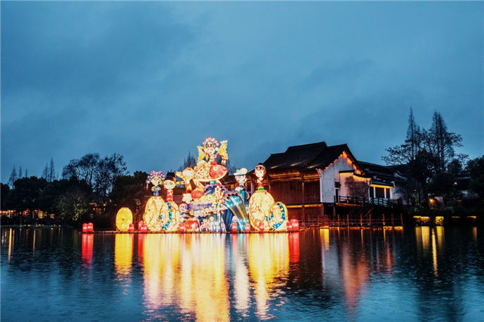 2020年1月17日(小年夜),一年一度的烏鎮(zhèn)水燈會(huì)在西柵景區(qū)璀璨亮燈,水陸兩組燈彩繽紛奪目、如夢(mèng)似幻,烏鎮(zhèn)水鄉(xiāng)特色的水上年市也熱鬧開市,這也意味著“烏鎮(zhèn)過大年”正式拉開了序幕。