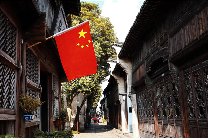 十月一日,祖國華誕,普天同慶,烏鎮(zhèn)景區(qū)處處蕩漾著節(jié)日的喜悅,飄舞的國旗、簇?fù)淼孽r花和五彩的燈飾,慶祝祖國70華誕。
