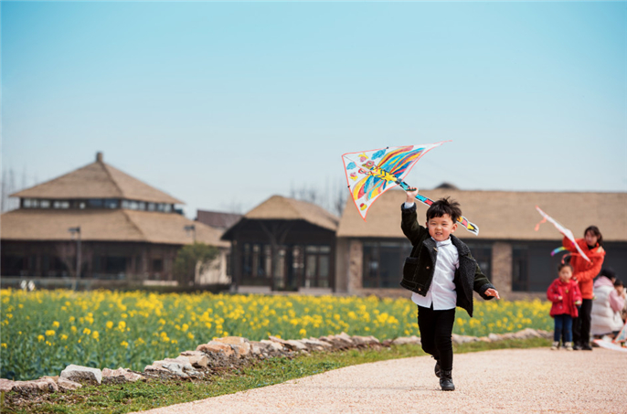 烏鎮(zhèn)西柵龍形田里的油菜花正競相開放;西市河里的錦鯉剛躍出水面;西柵搖櫓船的船槳正緩緩撥開水面。