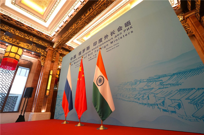 2月27日,在浙江烏鎮(zhèn)西柵枕水度假酒店,中俄印外長第十六次會晤隆重舉行。國務(wù)委員兼外交部長王毅主持會晤,俄羅斯外長拉夫羅夫、印度外長斯瓦拉吉出席本次會晤。