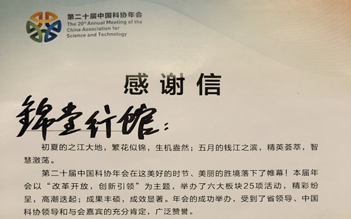近日,烏鎮(zhèn)景區(qū)行館收到一封來(lái)自第二十屆中國(guó)科協(xié)年會(huì)組委會(huì)的感謝信,感謝其用優(yōu)質(zhì)服務(wù)對(duì)此屆中國(guó)科協(xié)年會(huì)的大力支持和鼎力相助。