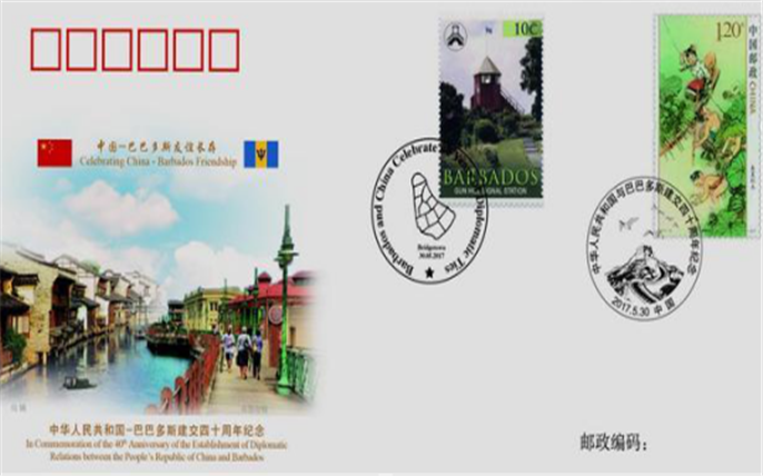 值得一提的是,這次40周年的紀念郵票是將中國烏鎮(zhèn)水鄉(xiāng)和巴首都布里奇頓水岸景色融為一體。寓意著,兩國不同文明的交匯,雙方人民心靈相通。