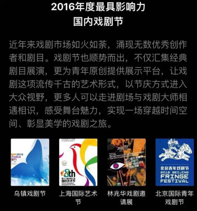 2016年年末豆瓣評選年度最具影響力的國內(nèi)戲劇節(jié),烏鎮(zhèn)戲劇節(jié)榜上有名。