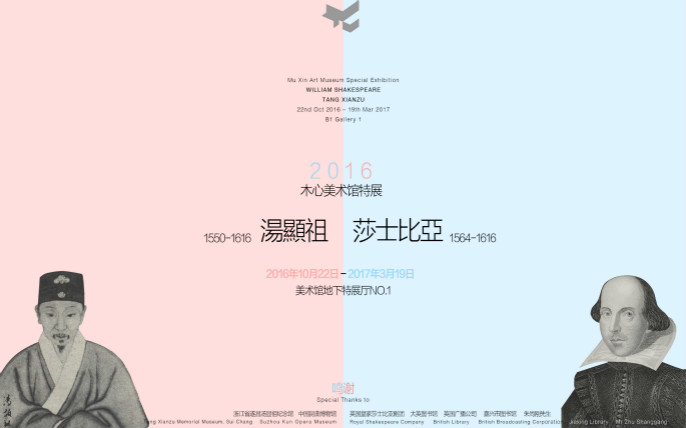 2016年10月22日-2017年3月19日,在木心美術館地下特展廳No.1將舉辦木心美術館2016年度特展“莎士比亞/湯顯祖”。