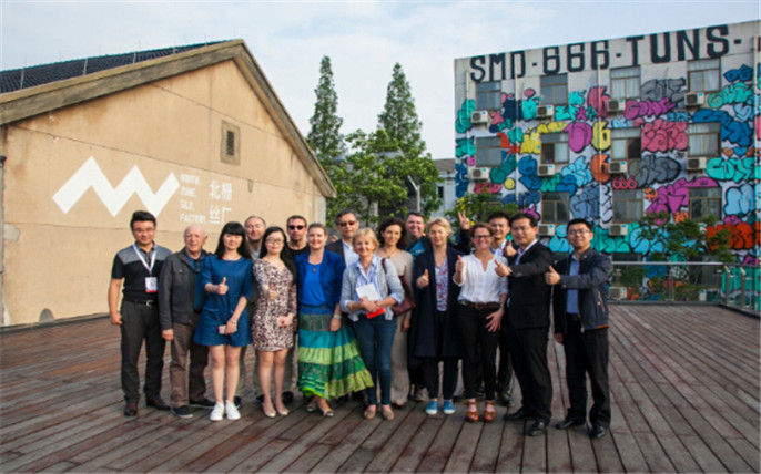 6月4日,北柵絲廠迎來(lái)了一批來(lái)自法國(guó)的參觀者,他們駐足在《漢字的性格》看的津津有味,他們中有幾位對(duì)中國(guó)漢字文學(xué)頗有研究的人員還相互交流起來(lái)。