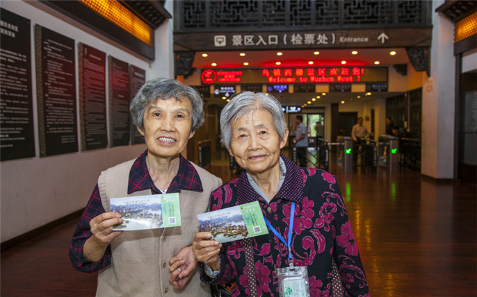 10月8日,是烏鎮(zhèn)旅游股份有限公司推出的“桐鄉(xiāng)市民優(yōu)惠游烏鎮(zhèn)西柵景區(qū)”活動(dòng)的第一天,上午9點(diǎn)30分,西柵景區(qū)游客服務(wù)中心迎來(lái)了首撥參與該項(xiàng)活動(dòng)的一對(duì)梧桐街道老姐妹。