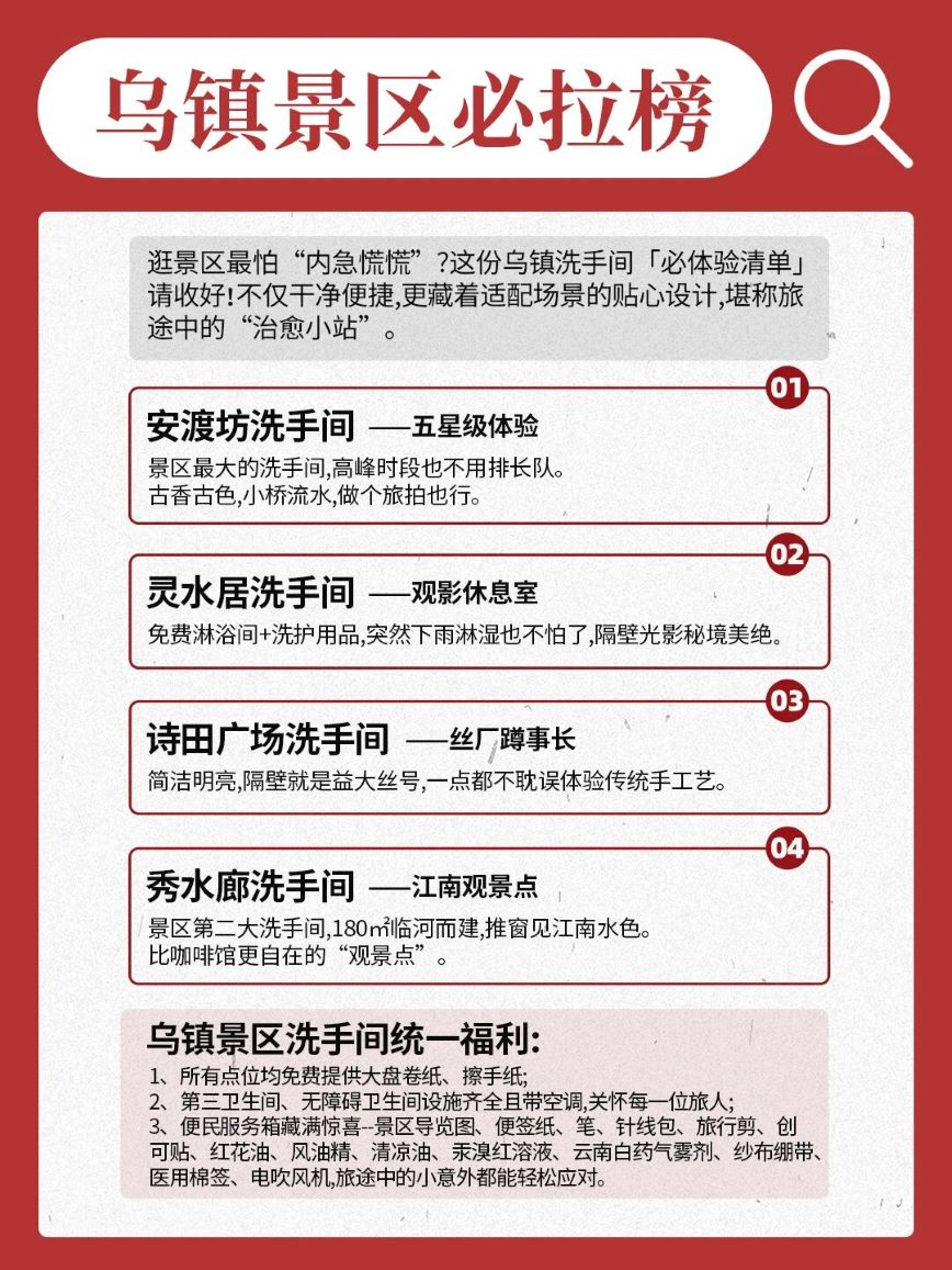 烏鎮(zhèn)的洗手間,是被游客捧紅的“隱藏景點(diǎn)”! 它可以是絕佳觀景臺(tái), 也可以是帶淋浴的“觀影休息室”。 在這里,解決內(nèi)急的同時(shí),還能打卡拍照, 徹底刷新你對(duì)景區(qū)洗手間的刻板印象!