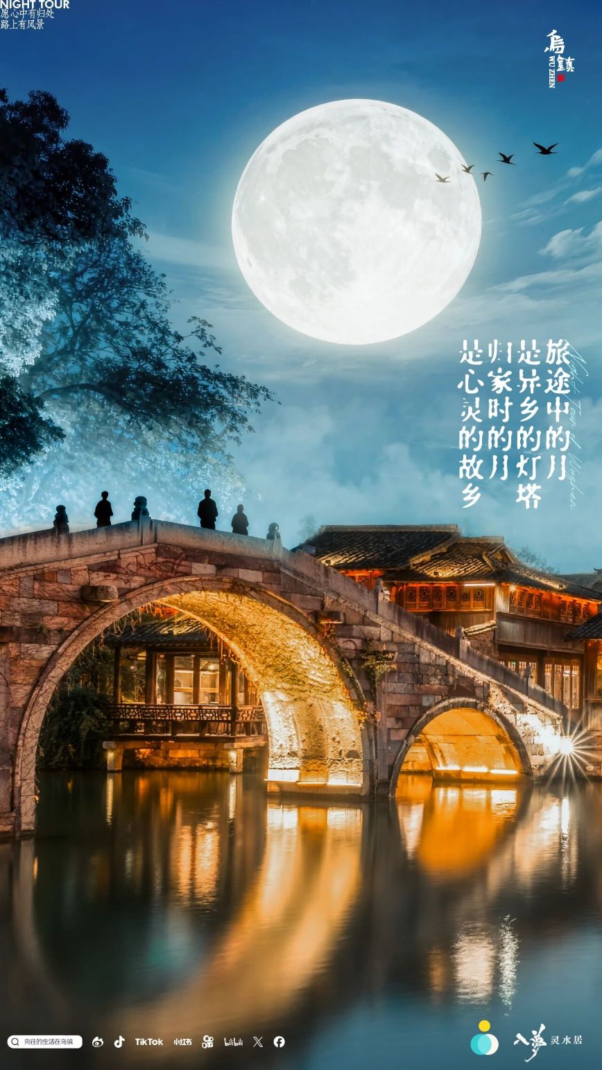 國(guó)慶邂逅中秋,烏鎮(zhèn)今夜別樣璀璨!當(dāng)暮色漫過水鄉(xiāng),不妨提一盞燈,隨人流走過祈福的石橋,去“昭明月集”淘選一件心儀好物,去水劇場(chǎng)追漫天泡泡,在莊重的祭月大典中分一塊團(tuán)圓月餅,最后在靈水居光影秀中沉浸式體驗(yàn)江南中秋夜的詩意與浪漫。