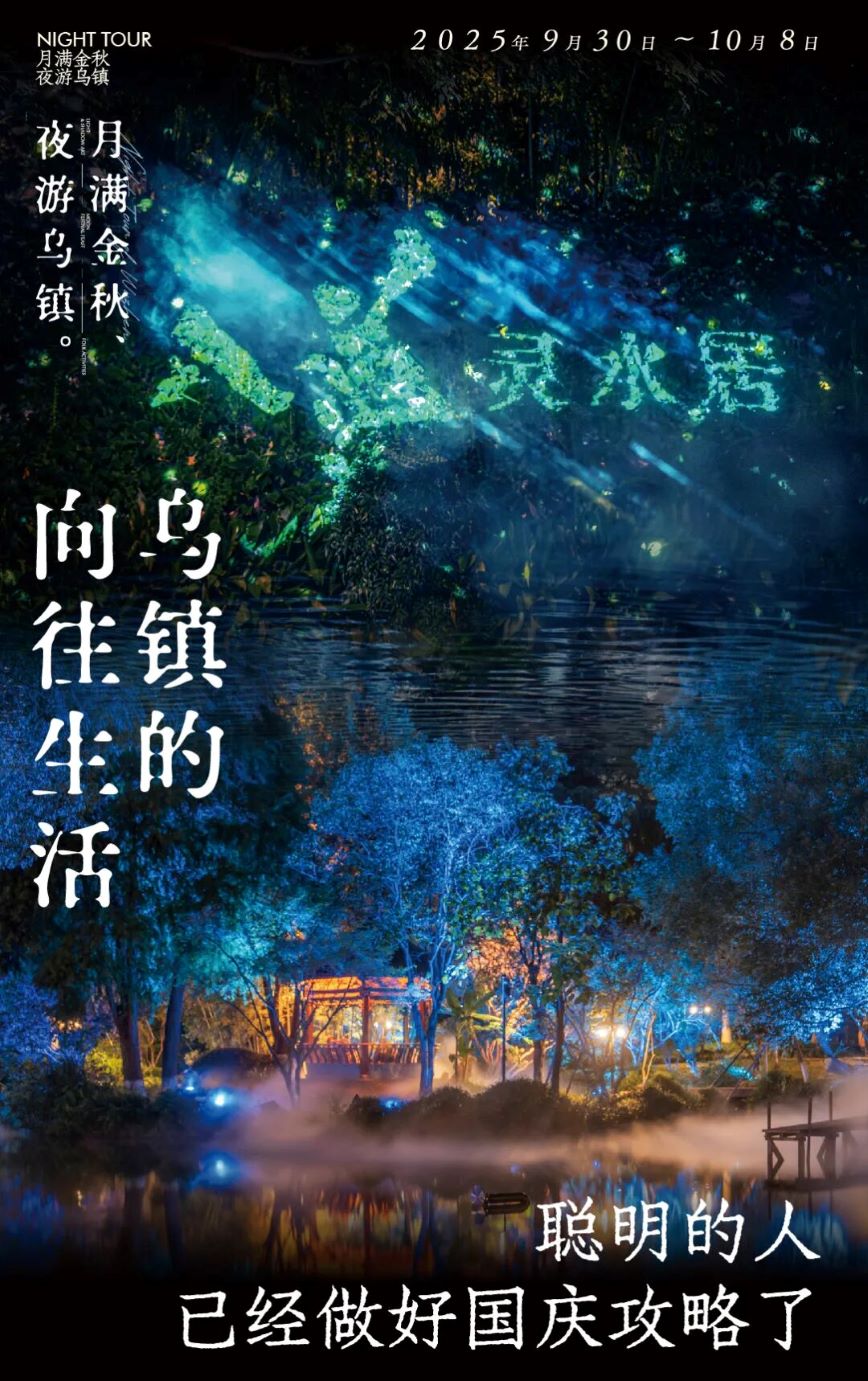 國(guó)慶,烏鎮(zhèn)上新! 黃昏漸沉,櫓聲暫歇 烏鎮(zhèn)西柵的靈水居卻悄然蘇醒 白墻黛瓦褪去日間的素雅 化身一場(chǎng)流動(dòng)的光影夢(mèng)境 《入夢(mèng)靈水居》沉浸式光影秀 以光為筆,以水為墨 將江南園林繪成一首可步入的詩(shī)