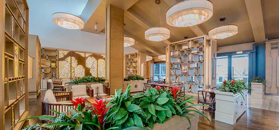 建筑面積0.75萬平方米,為單層建筑,建筑高度為14.5米,是整個項目的人流集散中心。其中地上建筑由接待大廳(含售票咨詢、導(dǎo)游服務(wù)、行李存放等各種功能用房)、咖啡廳及圍廊構(gòu)成,屋面采用大單坡小青瓦屋面交疊構(gòu)型,中間設(shè)有庭院綠化,地下室層高5.4米,為設(shè)備機房及停車區(qū)位。