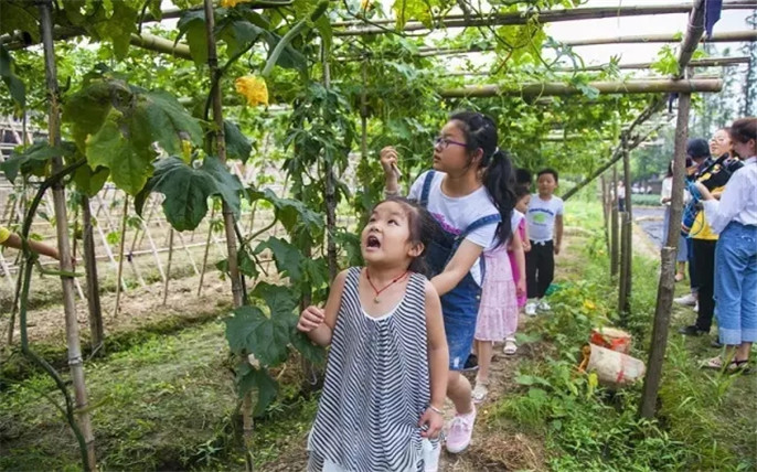烏村種植了許多的新鮮果蔬,孩子可以在小課堂聽CCO講解蔬菜的小知識,同時還可以去到田間地頭,辨識采摘蔬菜,采得后還可以來到廚房親自動手制作蔬果沙拉,真切體會到“1小時蔬菜”的意義。