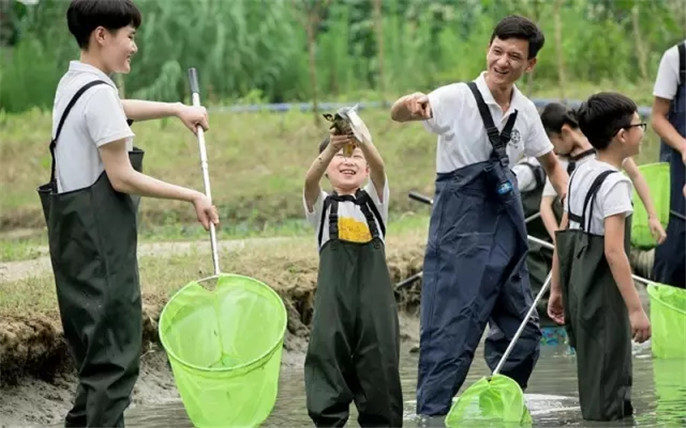 大自然是一切創(chuàng)作的靈感來源。當大人只敢躲在空調(diào)里吃西瓜解暑的時候,孩子們的熱情才剛剛開始釋放。泥巴、水田和魚塘,在CCO的帶領(lǐng)下,放飛自我的孩子們?yōu)樽サ紧~而興奮不已,為摸到軟糯的泥巴而尖叫,玩得不亦樂乎!